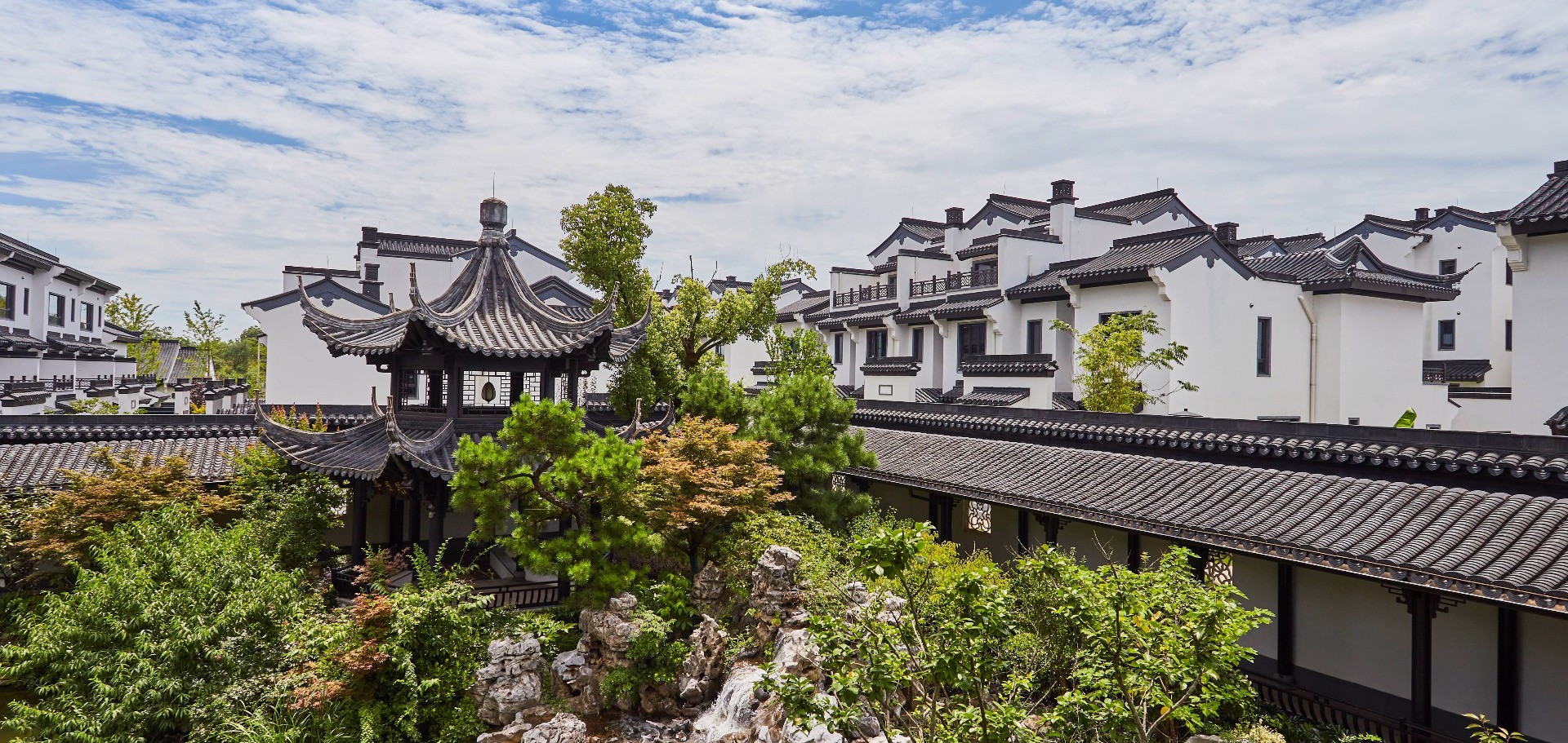 項目吸收中式建筑特征,以黑、白、灰的層次變化組成統(tǒng)一的建筑色調,結合徽派建筑與江南園林風格,講究自然原有的情趣,享受自然而然的雅致,將“天人合一”的傳統(tǒng)哲學思想,體現(xiàn)在居住及康養(yǎng)生活中,注重人與環(huán)境的和諧統(tǒng)一,回歸自然原有的純粹情趣。